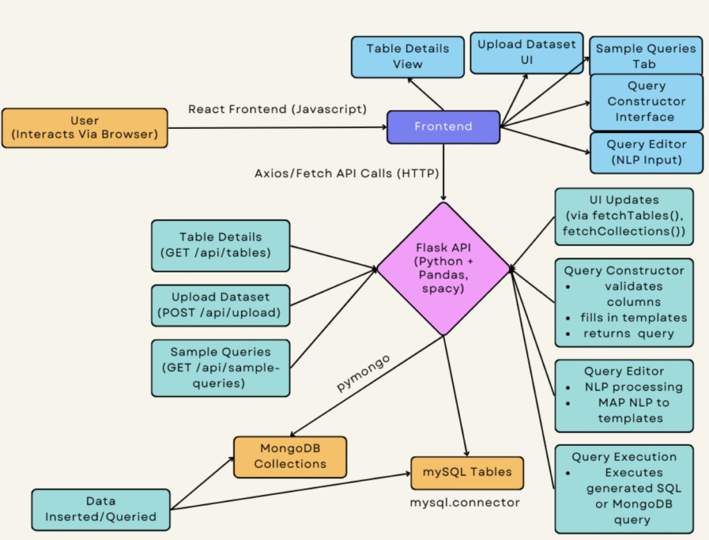 The system combines natural language processing, pattern recognition, and real-time query execution to create an interactive environment where users can learn database concepts by doing.